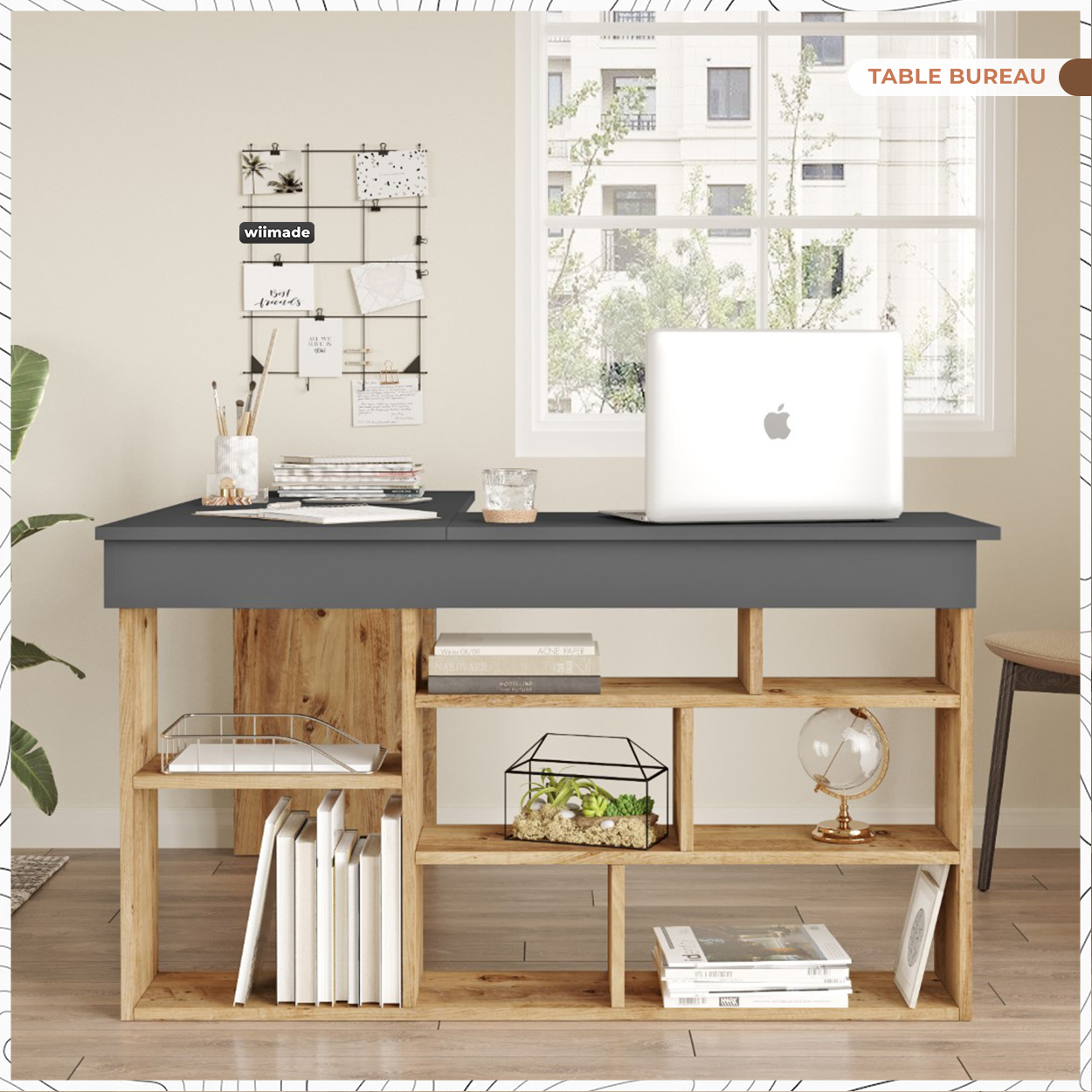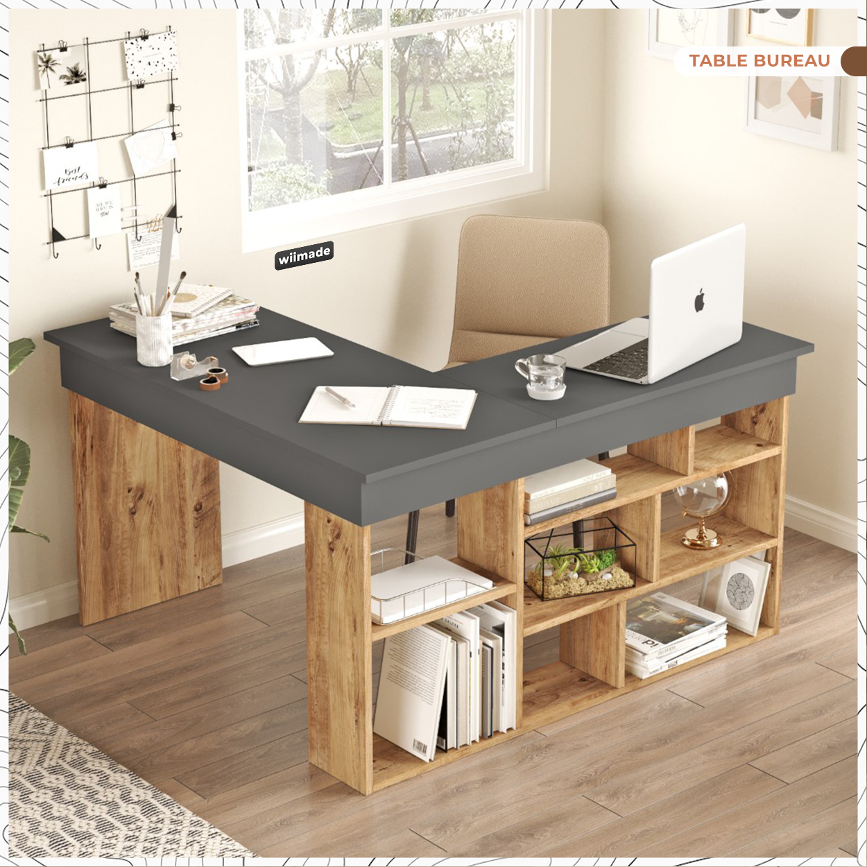 Ce magnifique bureau vous offre un large espace de travail et de rangement composée de plusieurs étagères ✅Hauteur : 72 CM ✅Espace de travail principale (Longueur: 120CM, Largeur : 50 CM) ✅Retour (Longueur : 77 CM, Largeur : 40 CM) ✅Espace de rangement (longueur : 120CM, Largueur : 20 CM)